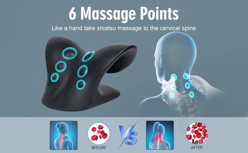 - Le coussin de relaxation cervicale et d'épaules est ergonomique et épouse la courbe de la colonne cervicale. En position allongée, il offre un soutien vertical et horizontal, ainsi qu'une fonction d'étirement de la courbure pour la traction cervicale. L'oreiller de traction cervicale positionne la tête pour réduire la pression vertébrale, soutenir la colonne cervicale et restaurer la courbure en C de la nuque.