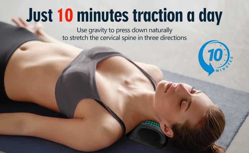 - Mode d'emploi : 1. Placez le support cervical de l'appareil au milieu de votre cou. Commencez par une légère traction (côté convexe vers votre tête) . Repositionnez délicatement l'appareil, vers le haut ou le bas de votre colonne vertébrale, pour trouver la position la plus confortable pour votre cou. Pliez les genoux et placez votre main près de votre tête.