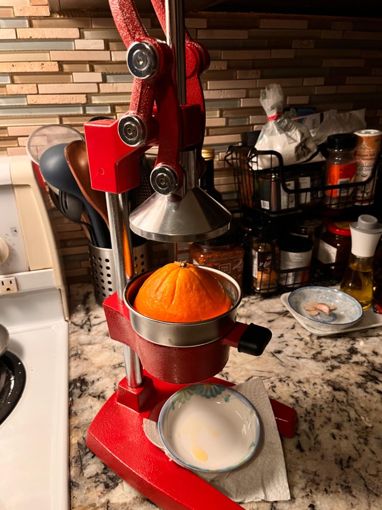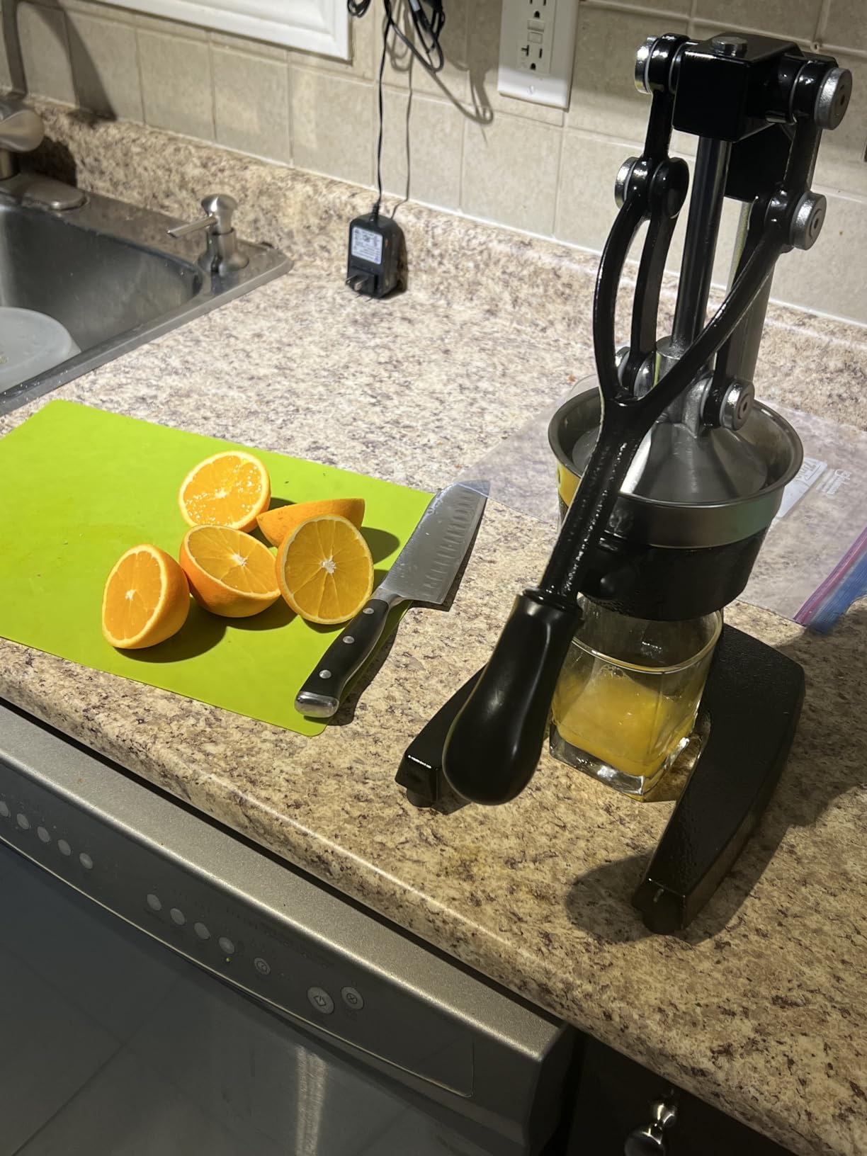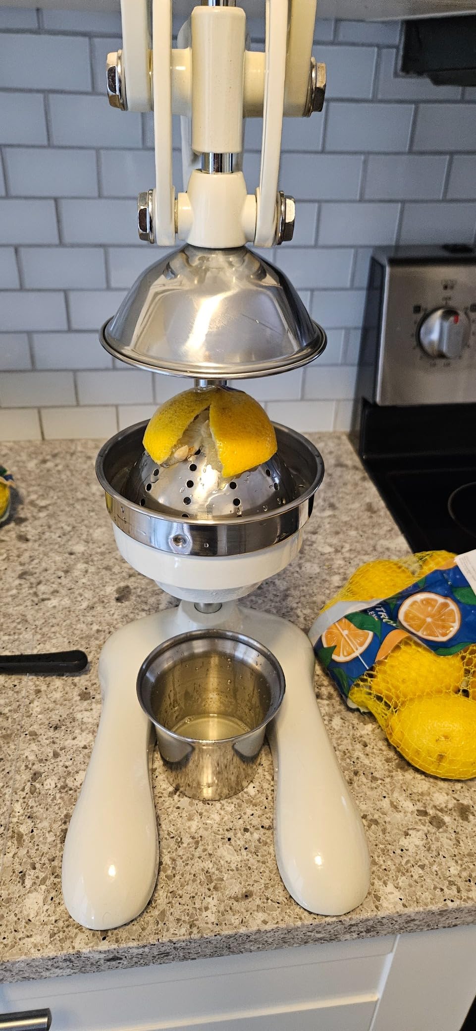 Switched from a handheld squeezer and the difference is huge. The lever does the work and the base doesn’t budge. I get a full glass from two oranges now.